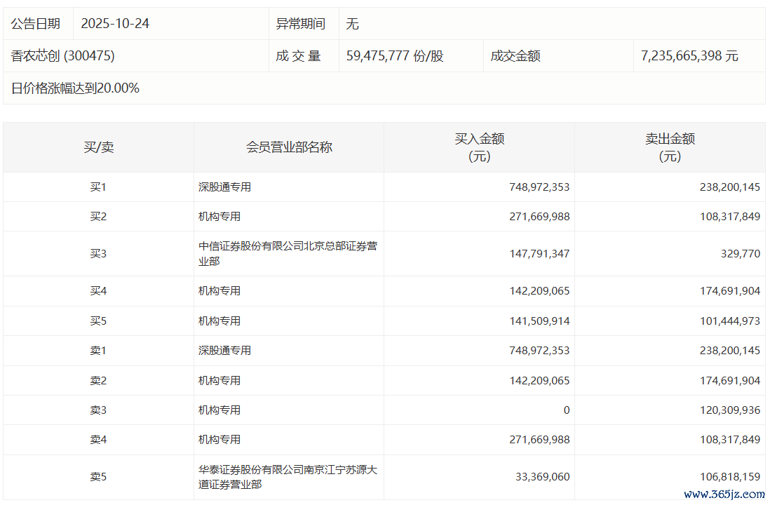 香农芯创今日20%涨停,2家机构专用席位净买入2.03亿元香农芯创今日20%涨停,2家机构专用席位净买入2.03亿元