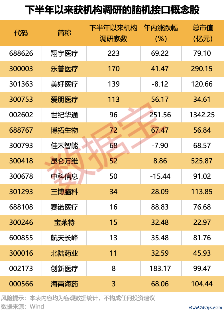 16只脑机接口概念股获得机构调研16只脑机接口概念股获得机构调研